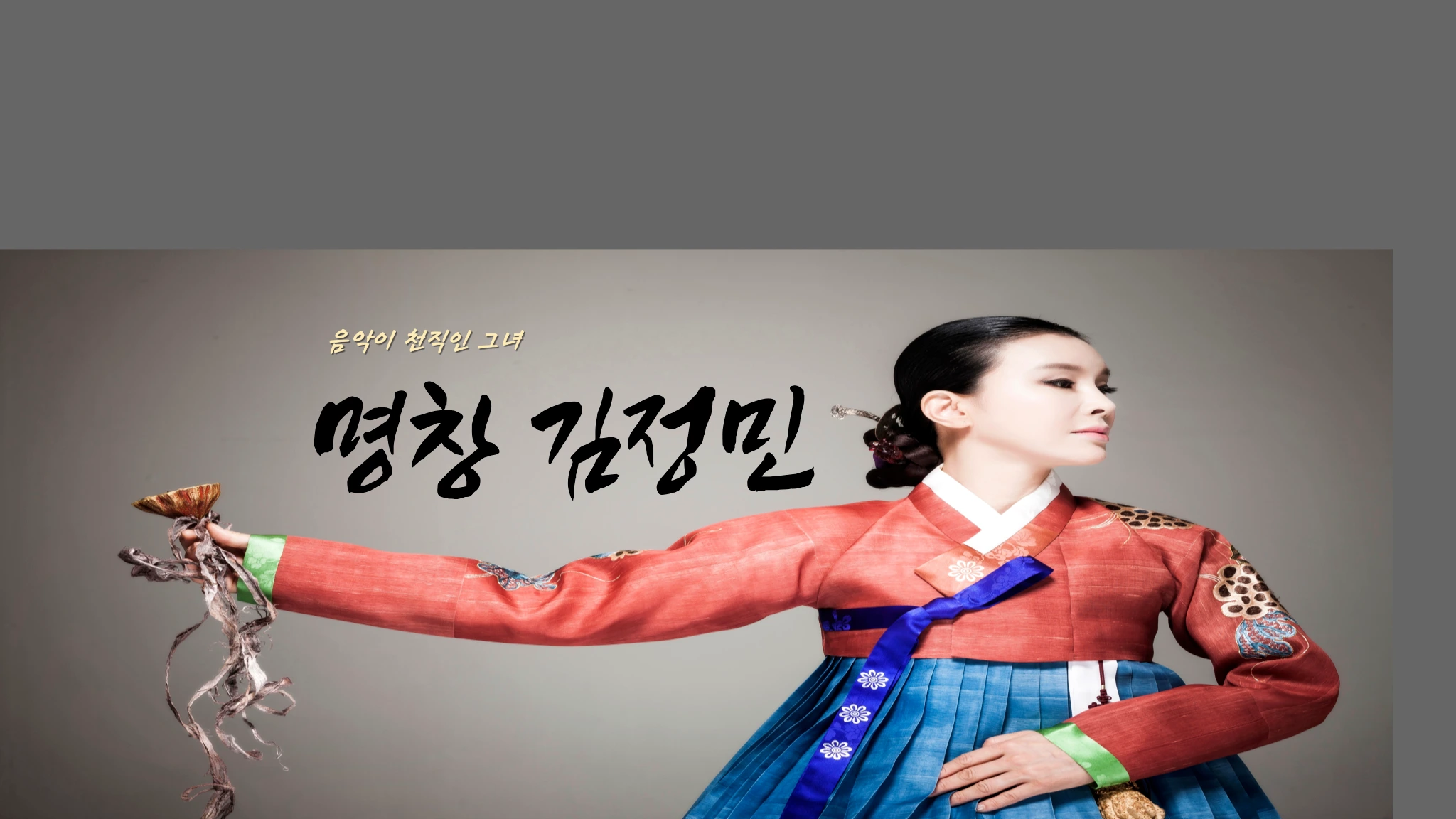 명창 김정민 (Kim Jung-min) 명창 김정민 공식사이트 www.kimjungmin.co.kr 간략프로필 -중앙대학교 한국음악과 판소리전공 -現 국가무형문화재 제5호 판소리 흥보가 이수자 -現 전주대사습놀이보존회 이사 -現 가무악꼬레 이사장 -現(주)GO&WIZ(지오앤위즈)대표이사 -現 중앙대학교 총동문회 수석부회장 (공연, 강연 수상 간략정보) -남원명인 명창대회 대상 수상 -제19회 송만갑 판소리 고수대회 명창부 대상 대통령상 수상 -체코슬로바키아 세계 연극제 모노드라마부분 대상 수상 -대종상 영화제 휘모리 신인여우상 수상 -2019 자랑스런 대한국민大賞 문화예술부문 대상 -2019 중앙인의 날 101주년 자랑스런 중앙인상 수상 -뉴욕 카네기홀 판소리 공연 -호주 시드니 오페라하우스 판소리 공연 -이탈리아 Barlassina Teatro Antonio Belloni 최초 완창 판소리 흥보가 공연 -이탈리아 (로마Teatro Torlonia,피렌체teatro Ni