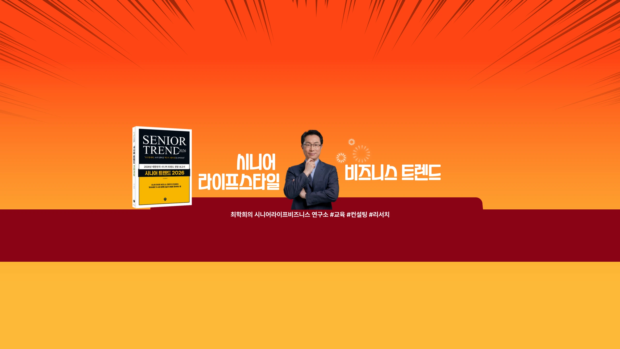 📘 신간 | 『시니어트렌드2026』 – 인공지능 시대, 1,700만 베이비붐세대를 위한 라이프·비즈니스 전략. 📘 신간 | 『현명한 사람은 왜 신탁을 선택할까? 』 – 신탁 아카데미 시니어라이프비즈니스 SLB 채널은 TPC(Time·Place·Cashflow) 프레임으로 시니어 라이프스타일 × 비즈니스 트렌드를 읽고, 바로 적용 가능한 체크리스트와 사례를 제공합니다. 🔔 구독하고 최신 인사이트 받기 → https://www.youtube.com/channel/UCloVLmbFoDTtThPmU-OCISQ 🎓 교육·컨설팅(기업/기관/단체) 교육/강연: 『시니어트렌드2026』 특강, AI 은퇴설계 Lab(10회 워크숍), 시니어 마케팅(TPC), AgeTech·AI 리터러시, 시니어신규사업개발(NBD) 컨설팅/프로젝트: 시니어 시장 전략, 상품·서비스/커뮤니티 설계, 리서치 모더레이션, 신탁·금융노년학 적용 B2B 협업·스폰서십: 레지던스·돌봄·여행(노마드 번들)·금융